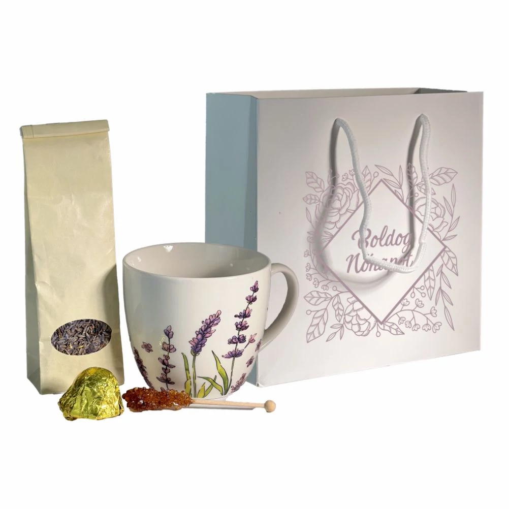 - Levendula mintás kerámia bögre (450 ml): Egyedi, kézzel festett levendula mintás bögre, amely minden teázáshoz különleges élményt nyújt. A 450 ml-es űrtartalomnak köszönhetően akár egy nagyobb adag teát is élvezhet belőle.