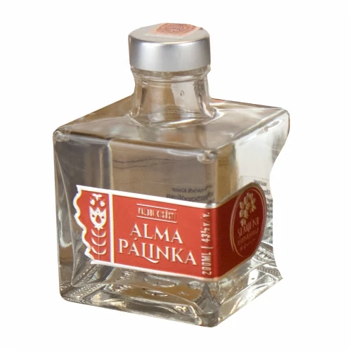 A Semjéni Pálinkaház valódi kisüsti bodzás alma pálinka egyedi, dombornyomott fémcimkével.
